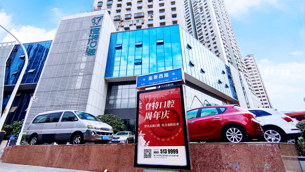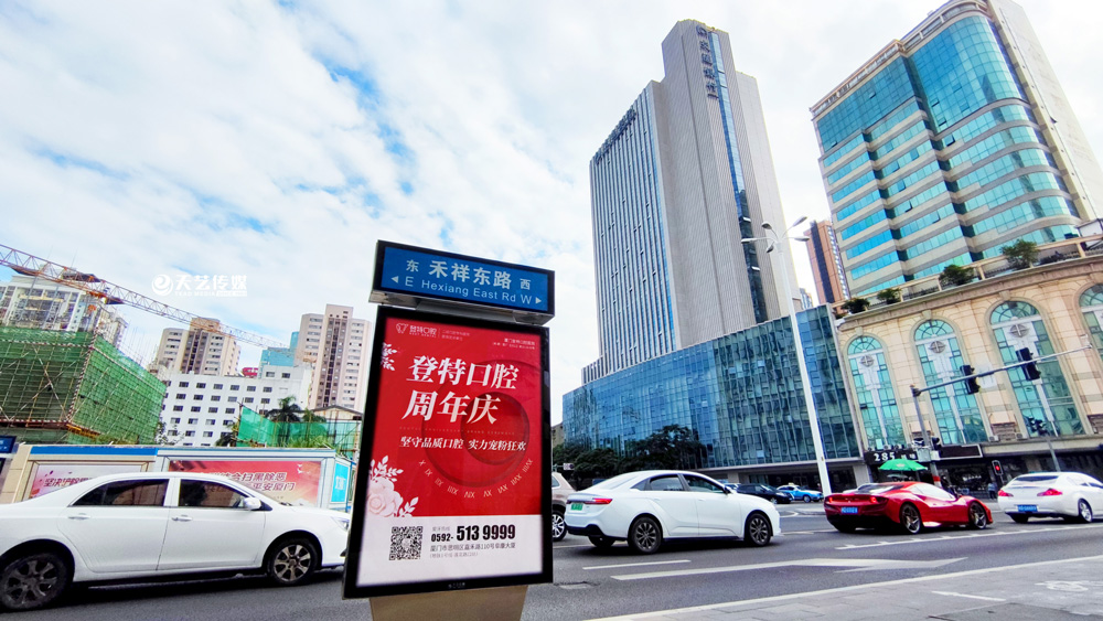 同時,廈門登特口腔繼續(xù)與廈門天藝傳媒合作,投放鷺島全城超200座城市路名牌,覆蓋島內(nèi)各大交通主干道(如嘉禾路、禾祥西路、禾祥東路)、核心商圈、商務(wù)區(qū)寫字樓林立區(qū)、人流車流覆蓋密集區(qū)域。