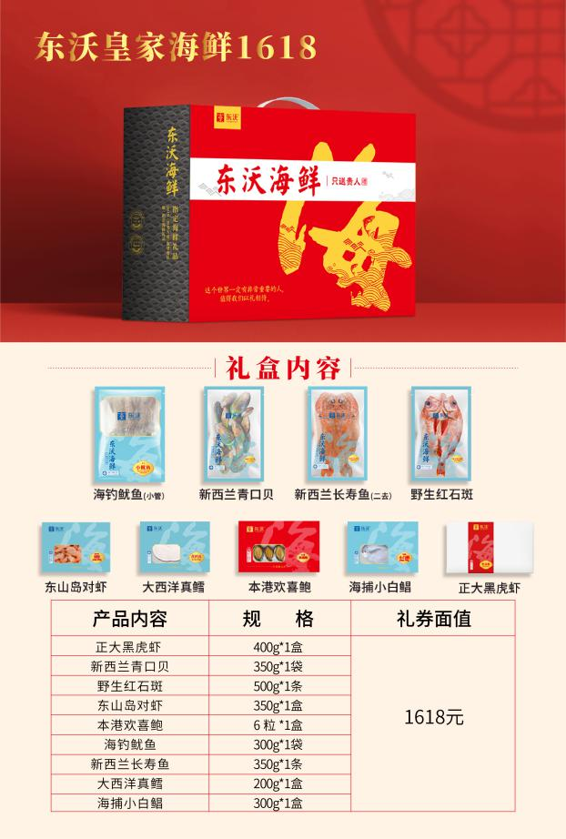 東沃海鮮盛宴禮盒魚、參、鮑、蝦滿滿一盒,將所有極具新年氛圍感、品質(zhì)高級感的海鮮,將所有對團(tuán)圓的期盼、對新年的祝福都融入其中。