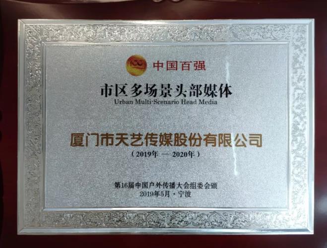 廈門市天藝傳媒股份有限公司創(chuàng)立于1993年,業(yè)務(wù)范圍覆蓋品牌管理、創(chuàng)意策劃、整合營銷、媒體投放等傳播鏈條。公司發(fā)展26年,在戶外傳媒領(lǐng)域極具市場競爭優(yōu)勢,形成了城市路名牌、公交候車亭、站名牌、廈門國際郵輪中心媒體、廈門航空艙內(nèi)媒體、廈門機場手推車、網(wǎng)約車媒體等“海·陸·空”360°全媒體覆蓋。在此次會議中,廈門市天藝傳媒股份有限公司有幸榮獲《中國百強市區(qū)多場景頭部媒體》的獎項。