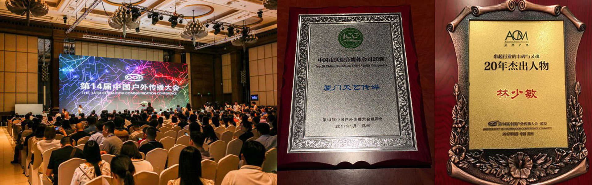 在剛剛落幕的第14屆中國戶外傳播大會上,廈門天藝傳媒有限公司憑借20余年的媒體經(jīng)營實力、誠信可靠的行業(yè)口碑及強大的市場占有率,在第六屆中國百強媒體評選中,從眾多優(yōu)質(zhì)候選